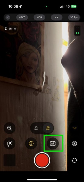 フォーカスコントロールボタンiPhoneの最終カットカメラアプリでは、ユーザーがビデオの自動焦点と手動フォーカスを切り替えることができます。デフォルトでは、最終カットカメラアプリのビデオのフォーカスはに設定されています自動。これは、アプリができることを意味しますビデオショットで一次被験者を自動的に検出し、それに応じて焦点を合わせます。