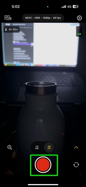 さて、iPhoneの最終カットカメラの主要な機能、すなわちビデオ映像の録音と保存に来ると、かなり簡単で馴染みがあります。したがって、iPhoneの最終カットカメラでビデオの録画を開始するには、単純にレコードボタンをタップします一番下に。