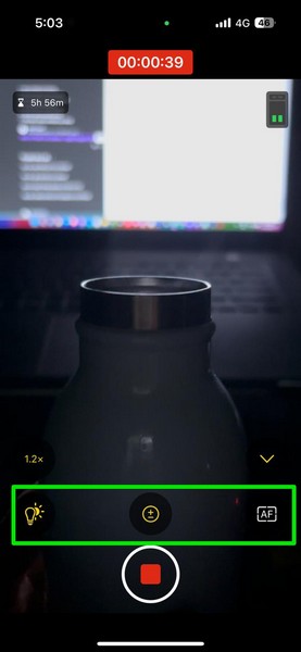 これにより、アクセスできますシャッタースピードそしてISOコントロールiPhoneの最終カットカメラ内のビデオのために。その後、簡単にできます提供されたコントロールのいずれかをタップして、スライダーにアクセスしますそして好みに応じて調整します。