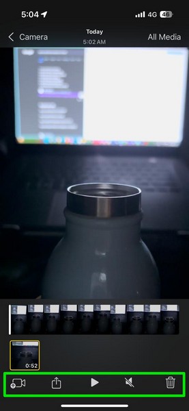 ここからできます最新のビデオショットを近くのiPadの最終カットプロアプリに直接エクスポートするデバイス、他のプラットフォームで共有します、それを再生または一時停止します、オン/オフサウンド、 そして削除します。