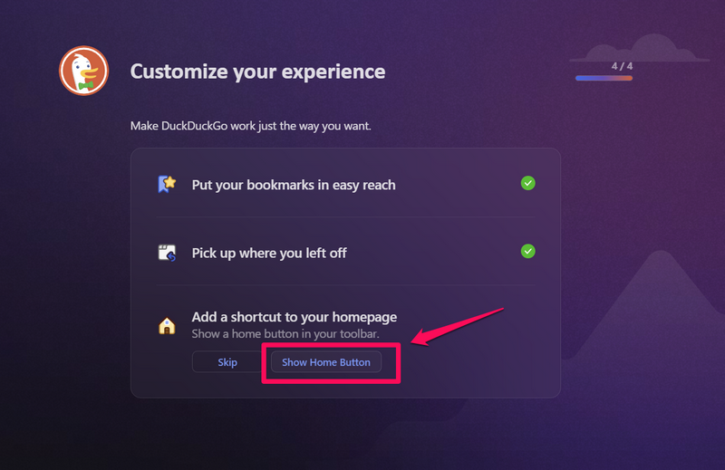 13。Duckduckgoブラウザに戻り、クリックします次のボタン続行する。