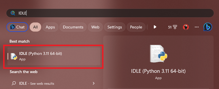 コマンドラインインターフェイスの使用を楽しんでいる人がいない場合は、コマンドプロンプトアプリでコードを実行するのが好きではない場合があります。したがって、Pythonプログラムを作成および実行する次の方法は、Python Idleを使用することです。これは、Pythonとともにシステムにインストールされました。 Pythonアイドルでコードを書き込んで実行する方法は次のとおりです。