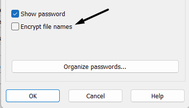 6。チェックしますファイル名を暗号化します不正なユーザーがアーカイブ内のファイルの名前を表示できないようにするボックス。