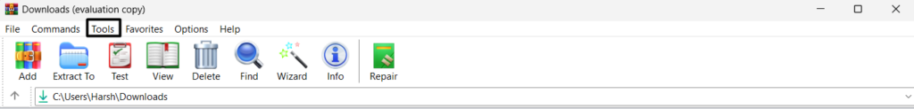 1。開きますWinrarユーティリティWindows 11 PCでクリックしますオプショントップメニュー。