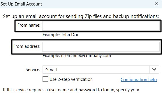 6。で情報を入力します名前から:そして住所から:次のプロンプトのテキストフィールド。