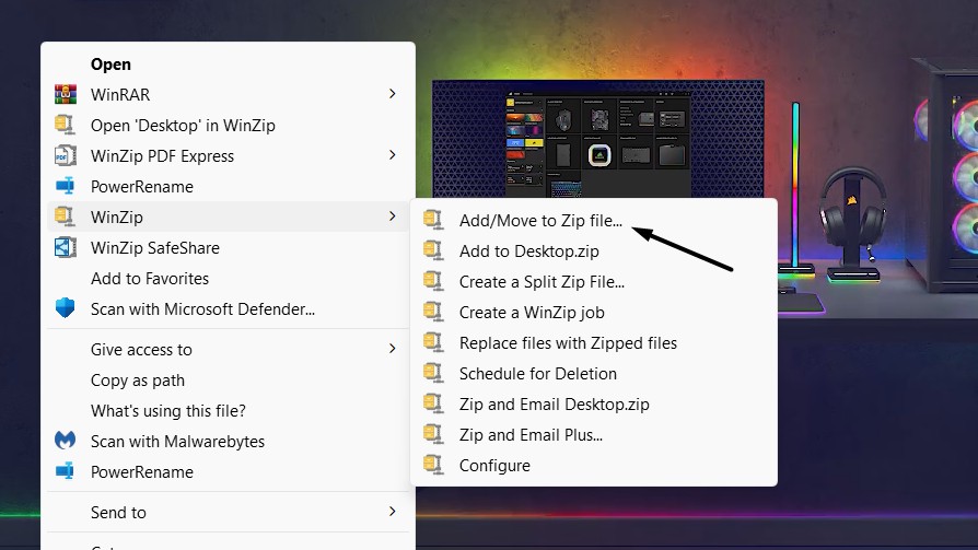 ジップするファイルを選択し、それらを右クリックしてから、Winzipを使用して選択したファイルをzipするそれぞれのオプションを選択する必要があります。これに加えて、Winzipのファイルをzipすることもできます。