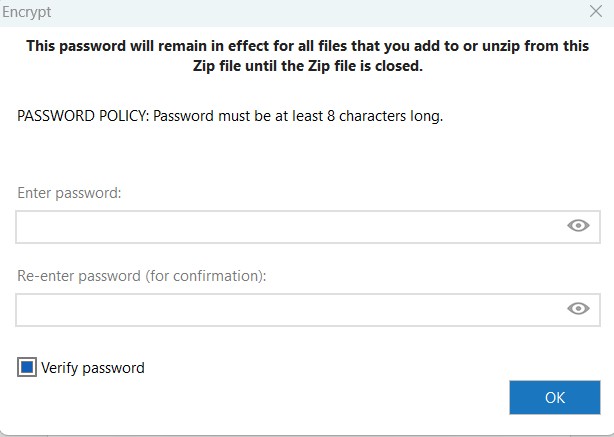 3。完了したら、選択したファイルに設定するパスワードを入力してくださいパスワードの入力:そしてパスワードを再入力する(確認用)テキストフィールドを使用して、をクリックしますわかりましたボタン。
