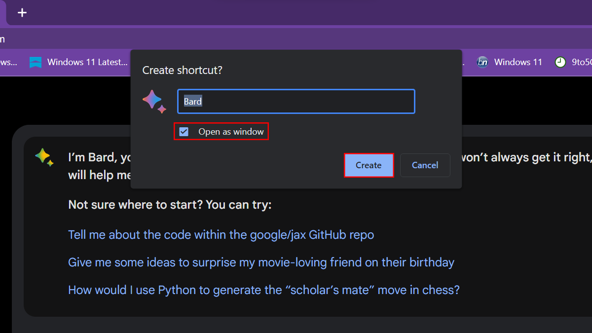 Windows 11ユーザーは、Windows 11およびWindows 10のGoogle Chromeの最新バージョンを介して、Google Bard AI Experience(PWA)としてインストールできます。