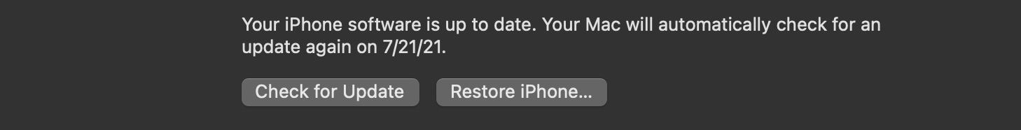 - FinderまたはiTunesの[更新のチェック]ボタンをクリックします。これにより、Appleのサーバーの最新の更新が確認されます。これは、執筆時点でiOS 16.1です。