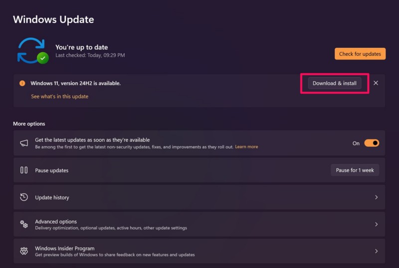 そうは言っても、Windows 11またはラップトップにWindows 11 24H2の更新を見つけるために、すぐ下の手順に従ってください。