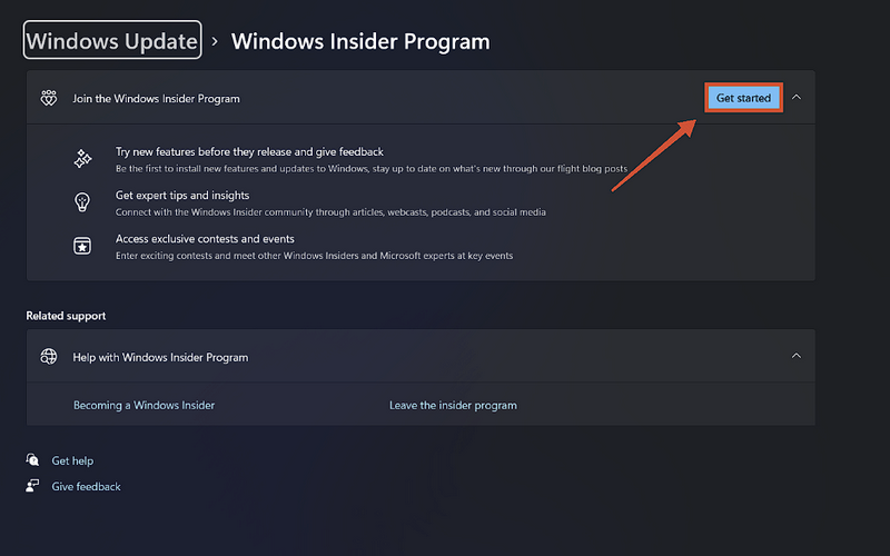 3。クリックしますWindows Insiderプログラム右ペインのオプション。
