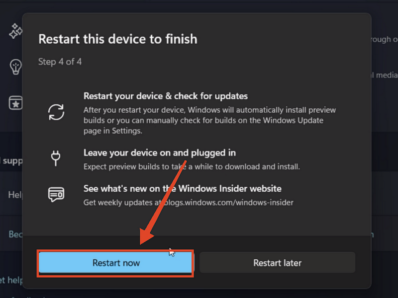 7。最後に、をクリックします[今すぐ再起動]ボタンを再開しますWindows 11 PCまたはラップトップを再起動します。