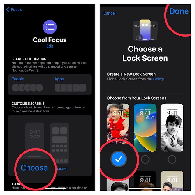 設定アプリを介して、特定のiPhoneロック画面とフォーカスプロファイルを組み合わせます