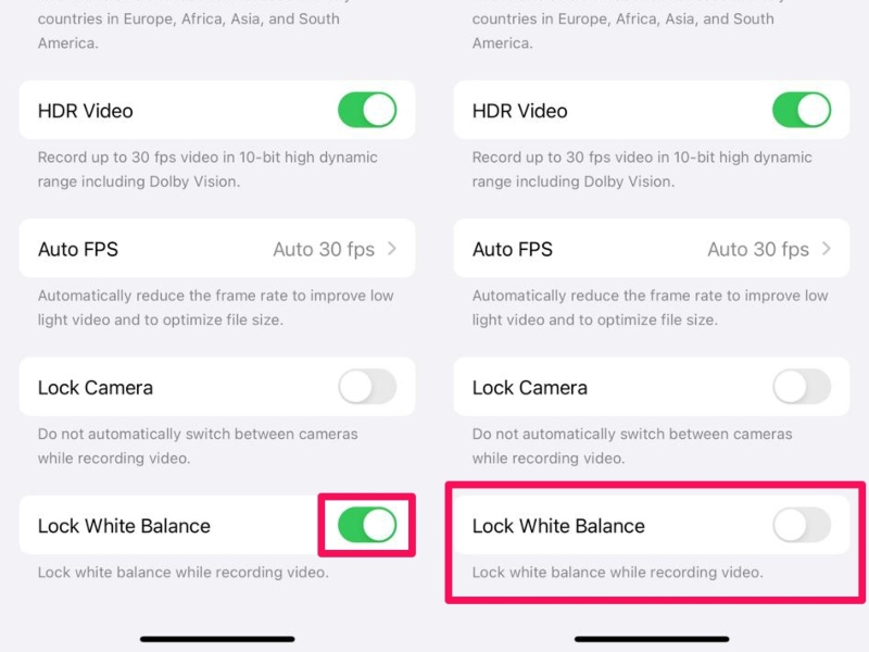 そして、それは基本的にそれです!これで、iPhoneカメラの新しいロックホワイトバランス機能を有効にしました。これにより、iOS 17デバイスを使用してビデオの録画を開始し、ロックして他の色を調整するためにロックすると、シーンのホワイトバランスが自動的に調整されます。