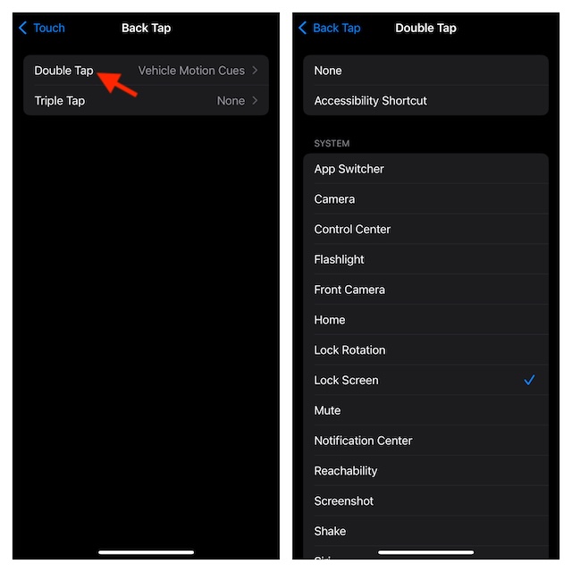 おそらく「バックタップ」機能の最良の部分は、幅広いアクションをサポートしていることです。したがって、Siriショートカットをトリガーしたり、システム機能をアクティブにしたり、お気に入りのアクセシビリティ機能をオンにしたりする場合でも、チェックオフにします。ロック画面ショートカットに関しては、予想どおりに機能します。ただし、対処中に心に留めておく必要がある特定のことがあります(詳細については、後で詳しく説明します)。