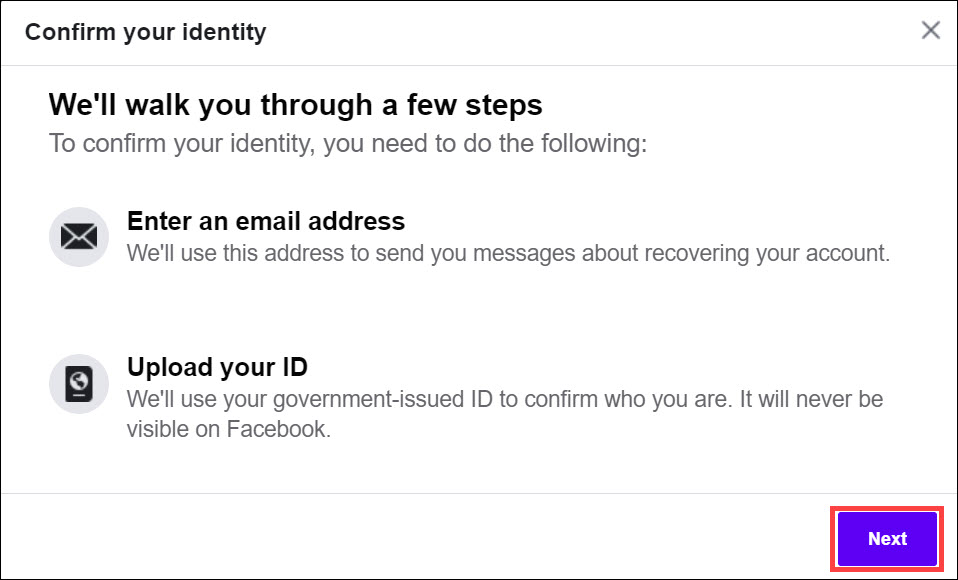 6。画面上の手順に従って政府IDを送信し、Facebookアカウントのロックを解除します。
