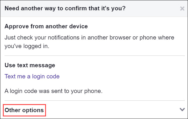 1。2FA画面の下で、「」をクリックします。それがあなたであることを確認する別の方法が必要ですか?」
