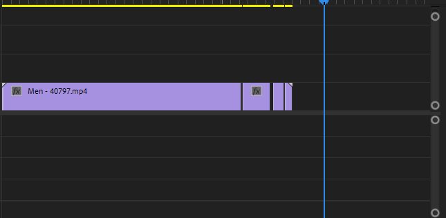 - 映像をカットして出し入れるには、下のスクリーンショットのように、グリッチを開始したいポイントでクリップを分割し、少し広げます。