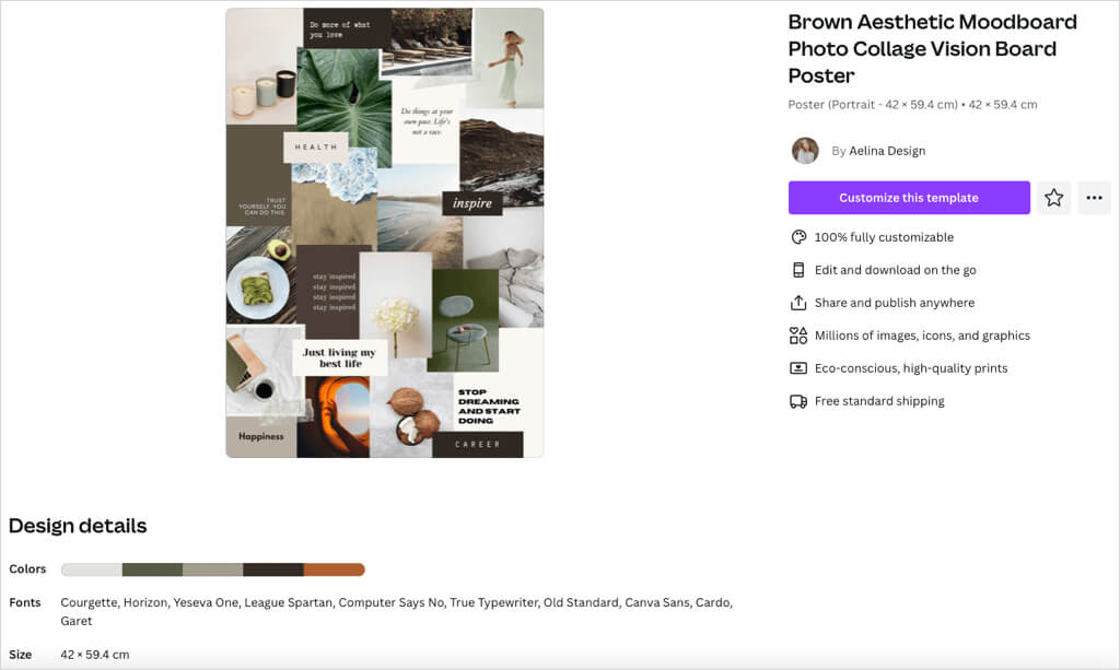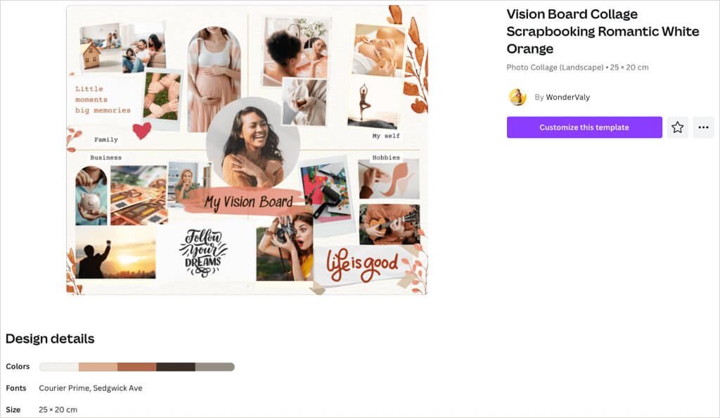 Canvaテンプレートを使用してビジョンボードを作成することにより、基本的なデザインから始めて、そこからカスタマイズできます。これにより、構造ではなく含める要素に集中する時間が増えます。