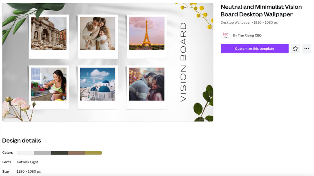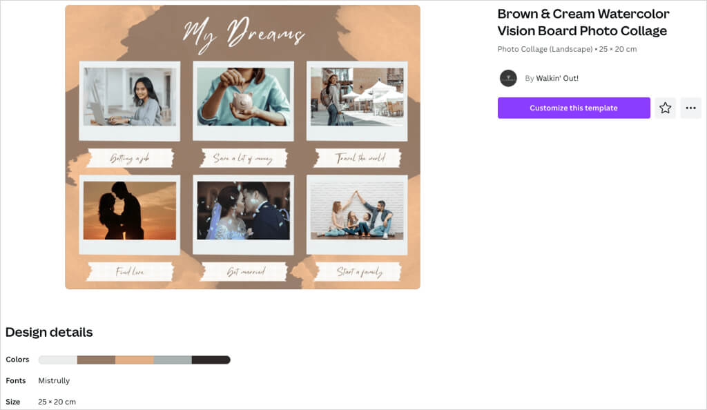 Canvaを既存の機能セットとは別に、魅力的なオプションにしているのは、Visionボードテンプレートを提供することです。これにより、ビジョンボードをゼロから作成することから時間を節約できますが、どんな方法でもボードをカスタマイズすることもできます。
