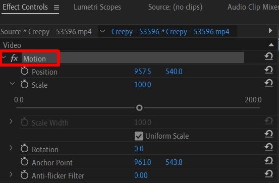 - に向かいます効果コントロールパネルと開きますモーションオプション。