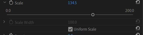 - 次に、を使用します規模数値を変更するか、スライダーを使用して効果を発揮します。数を増やすと、アンカーポイントにズームインが生成されます。
