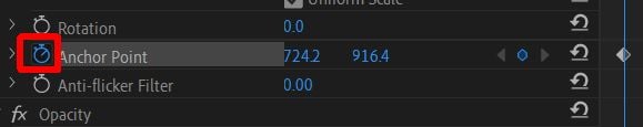- 次のストップウォッチアイコンをクリックしますアンカーポイントEffect Controlsパネル。