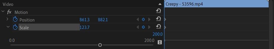- を使用します規模効果を発揮し、値を設定して、必要なポイントに完全にズームインします。スケール値を変更すると、キーフレームが自動的に設定されます。