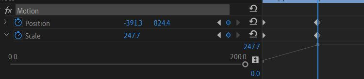 すでに元のスケールでクリップをズームアウトすると、クリップの背後にある背景のみが表示されます。ズームアウトからクリップを開始する場合は、最初にクリップの先頭にスケールを拡大し、キーフレームを使用してそこからズームアウトを作成する必要があります。