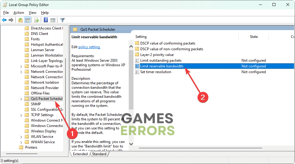 4. クリックしてくださいQoSパケットスケジューラダブルクリックします予約可能な帯域幅を制限します