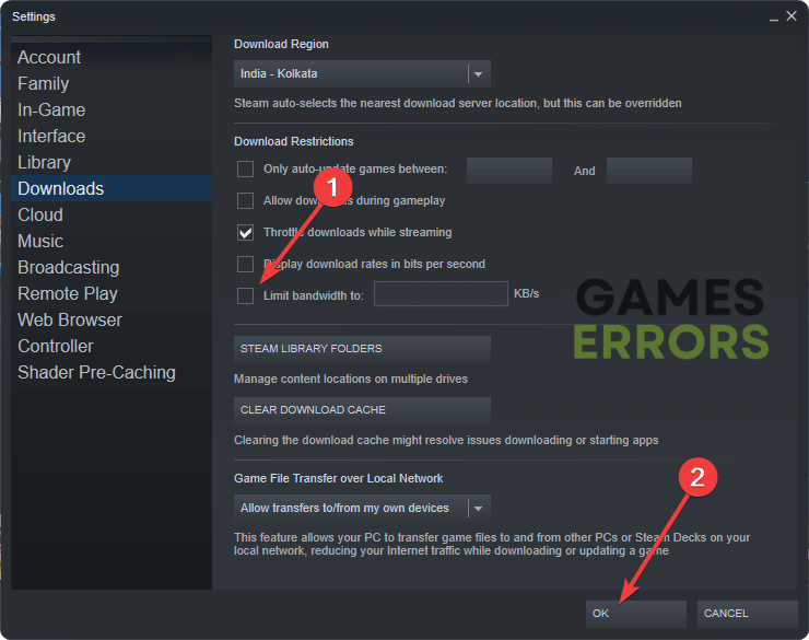 ダウンロード速度を向上させるには、ゲームのダウンロード領域を変更し、場所に近づける必要があります。蒸気では、次の方法でそれを行うことができます。