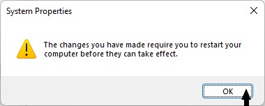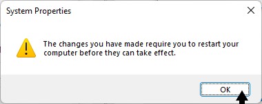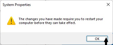 6.最後に、選択しますわかりました目的の変更を適用します。