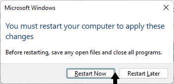 7。クリックしてください今すぐ再起動します。
