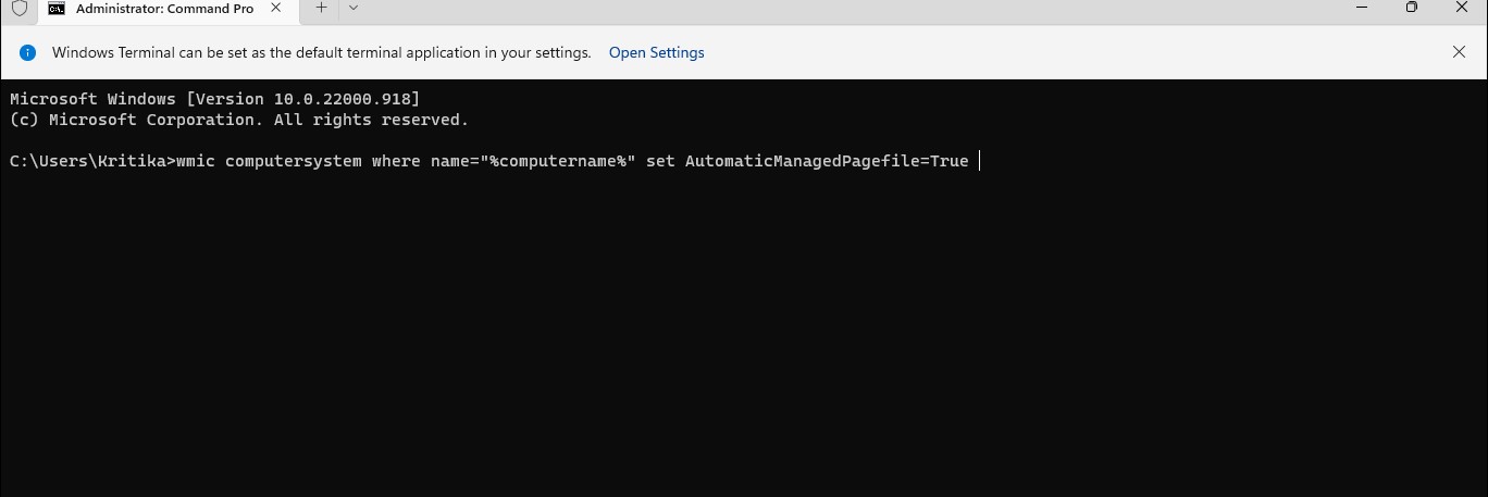 方法4:コマンドを使用して自動的に管理するすべてのドライブのページングファイルサイズを設定します