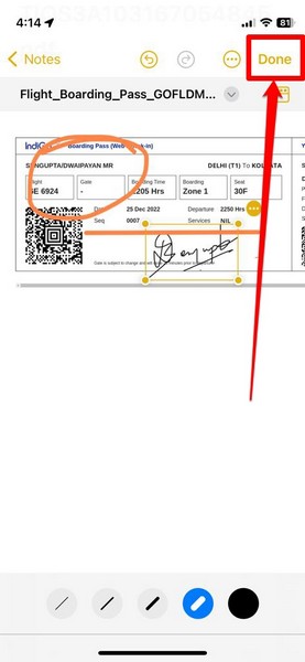 11。iPhoneのNotesアプリでPDFファイルに注釈を付けたら、タップします終わり変更を保存するために、右上隅のボタン。