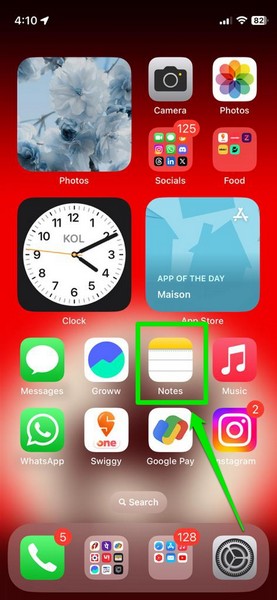 1。起動しますノートアプリあなたのiPhoneで。