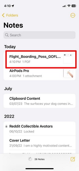 NotesアプリにマークアップするPDFファイルをエクスポートしたので、以下の手順に従って、iOS 17のiPhoneのアプリ内でそれを注釈付けすることができます。