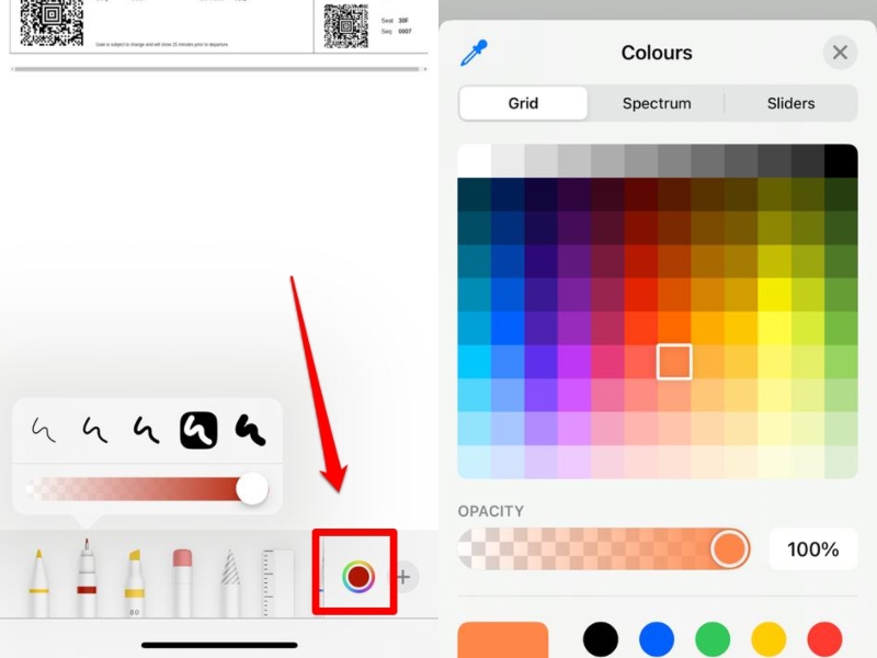 9。あなたもできますカラーピッカーをタップします好みのマークアップ色を選択します。