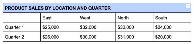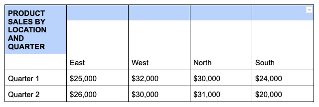 たぶん、タイトルの行を含めることでテーブルの外観を強化したり、列ヘッダーにまたがって読みやすさを向上させたいと思うかもしれません。 Google Docsテーブルにセルをマージすることで、これらの両方を簡単に実行できます。