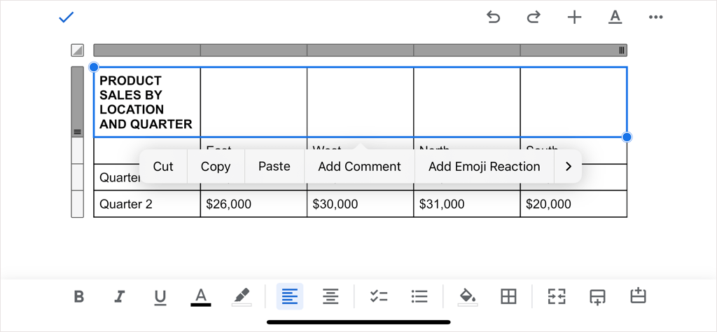 Androidと同様に、iPhoneとiPadのGoogle Docsアプリのセルをマージでき、2つの方法のいずれかを使用できます。