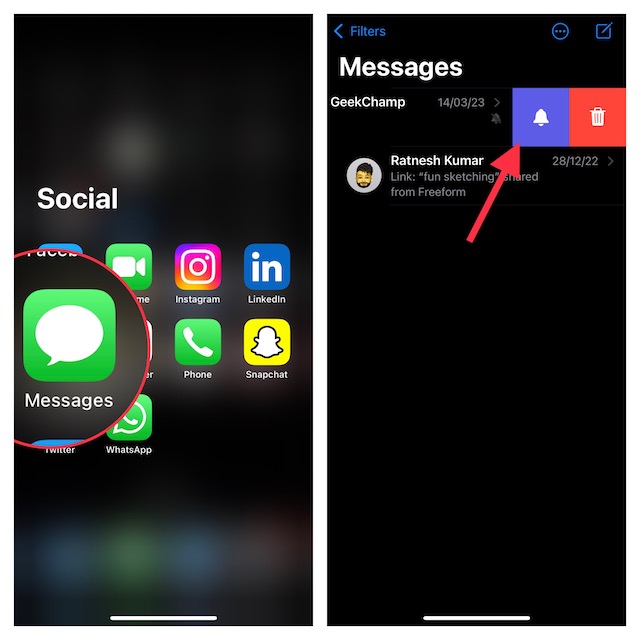 - その後、メッセージを左にスワイプし、ベルアイコンを押してチャットスレッドを解除します。したがって、ええ、この方法を使用して、すべてのチャットスレッドを解除することができます。