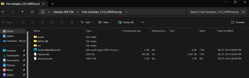 したがって、これは、Windows 11 PCまたはラップトップのZIPファイルに変換してコンテンツを表示することで、APKファイルを開く方法です。