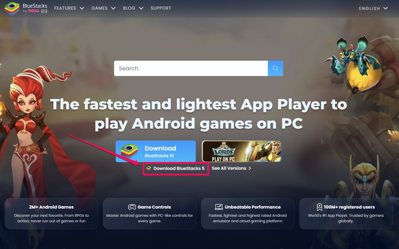 2。クリックしますBluestacks 5ボタンをダウンロードします。