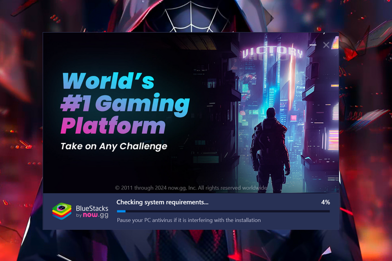 7。Bluestacksプログラムがダウンロードされるのを待ちますPCまたはラップトップで。