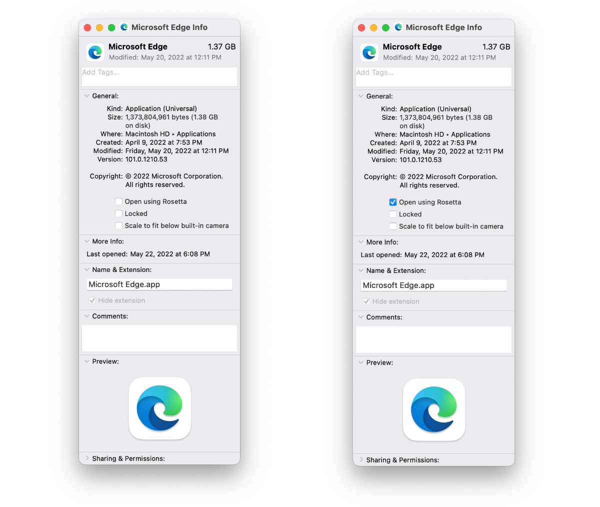 - InfoBoxで、「Rosettaを使用して開く」というオプションを探します。これを有効にし、情報ボックスを閉じます。