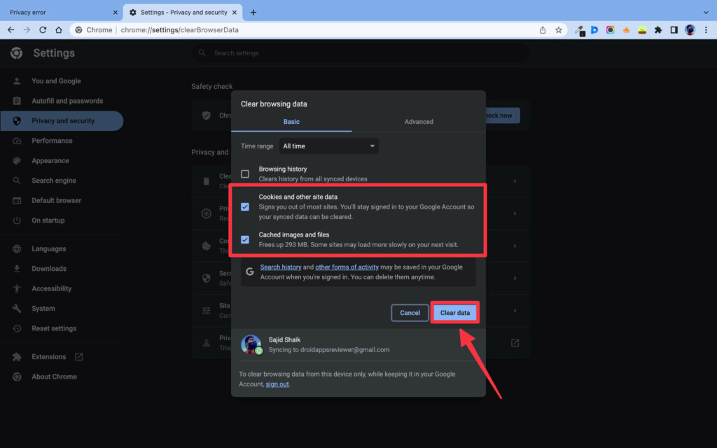 ウェブサイトが以前に機能していたが、青色で動作していない場合、ウェブサイトが安全でないことを示している場合は、ウェブサイトのCookieとサイトデータをクリアしてみてください。 WebサイトのCookieとサイトデータをクリアするには、次の簡単な手順に従ってください。