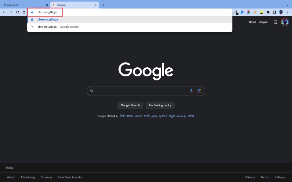 1。タイプChrome://フラグGoogle Chromeのアドレスバーで、押します入力または戻る鍵。