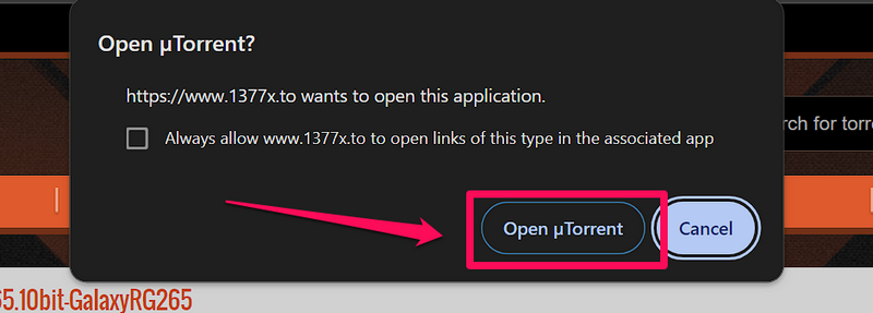 3。クリックしますUtorrentボタンを開きます次のプロンプトで。