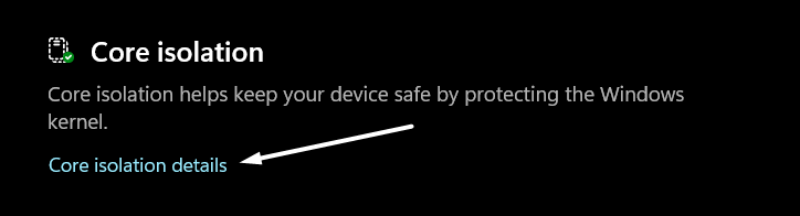 2。をクリックしますコア分離の詳細のオプションコア分離セクション。