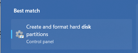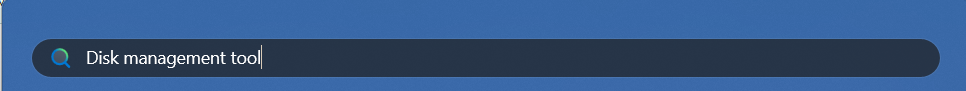 1。ヒットしますWindowsキーを開くWindows検索ボックスタイプディスク管理 道具その中に。